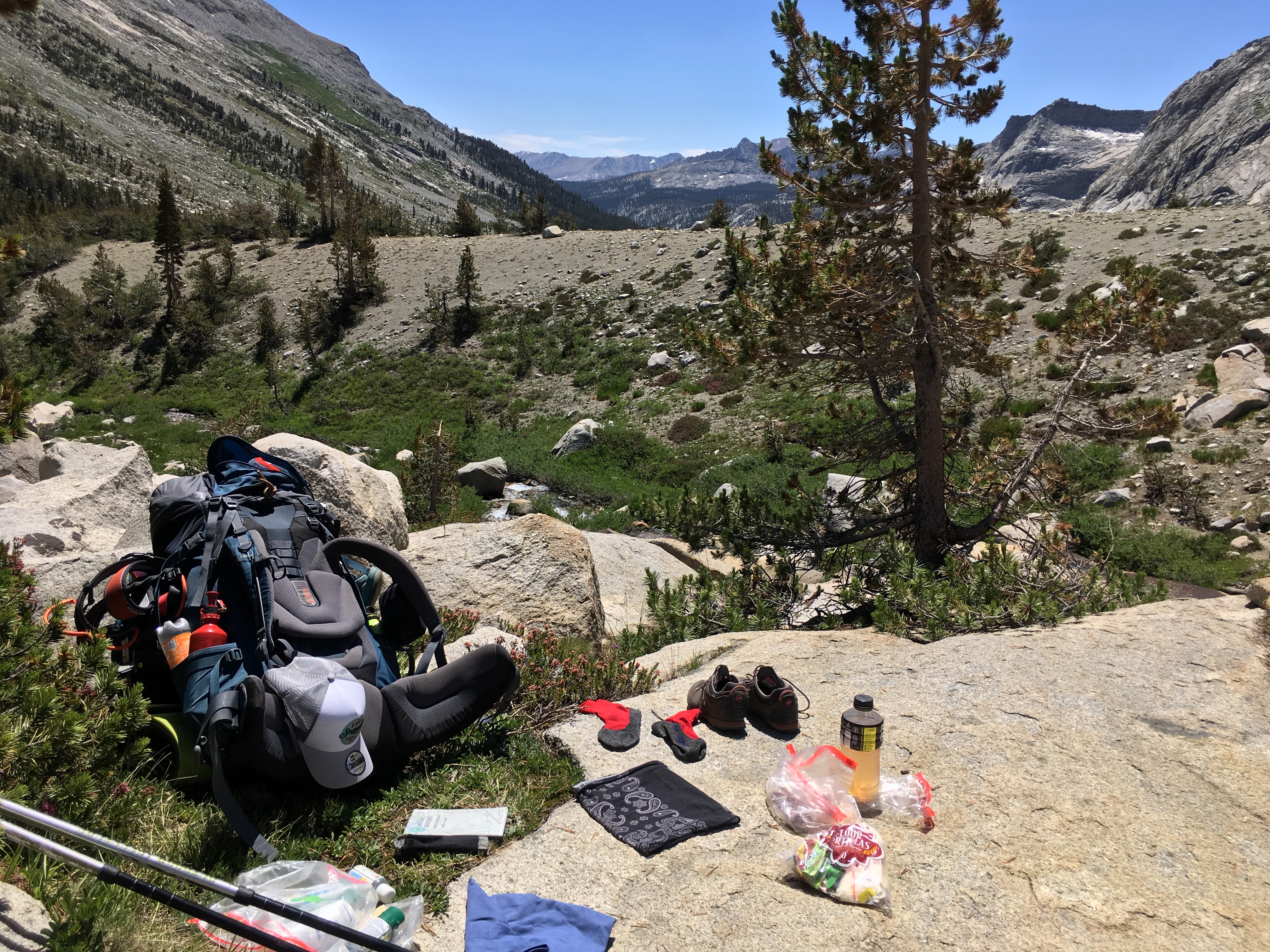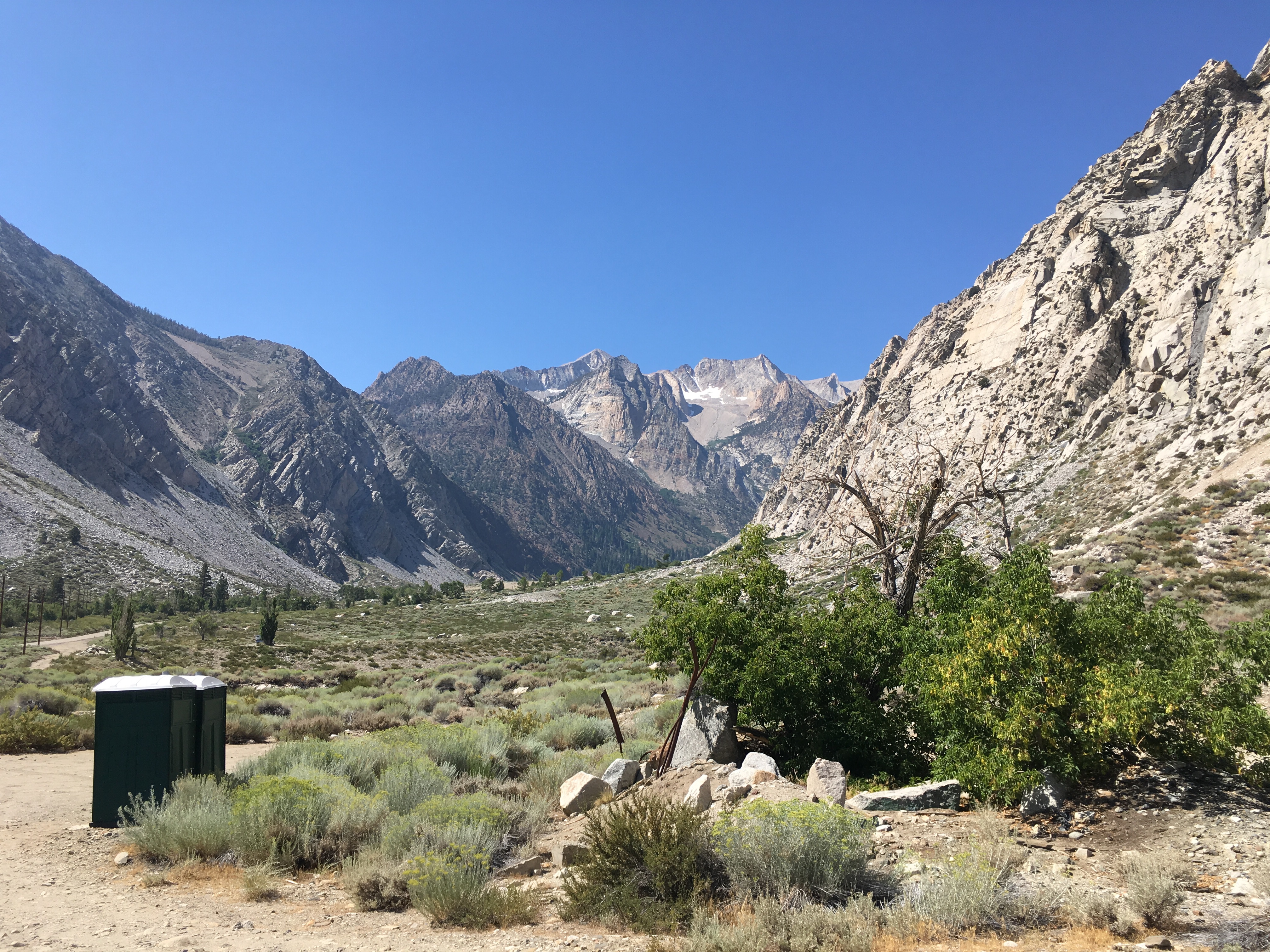 After resupplying on energy bars and coffee, I checked out and Nate (the employee I met at the gear exchange) picked me up from the motel. We drove up towards Lake Sabrina, past the famous Buttermilk boulder area.