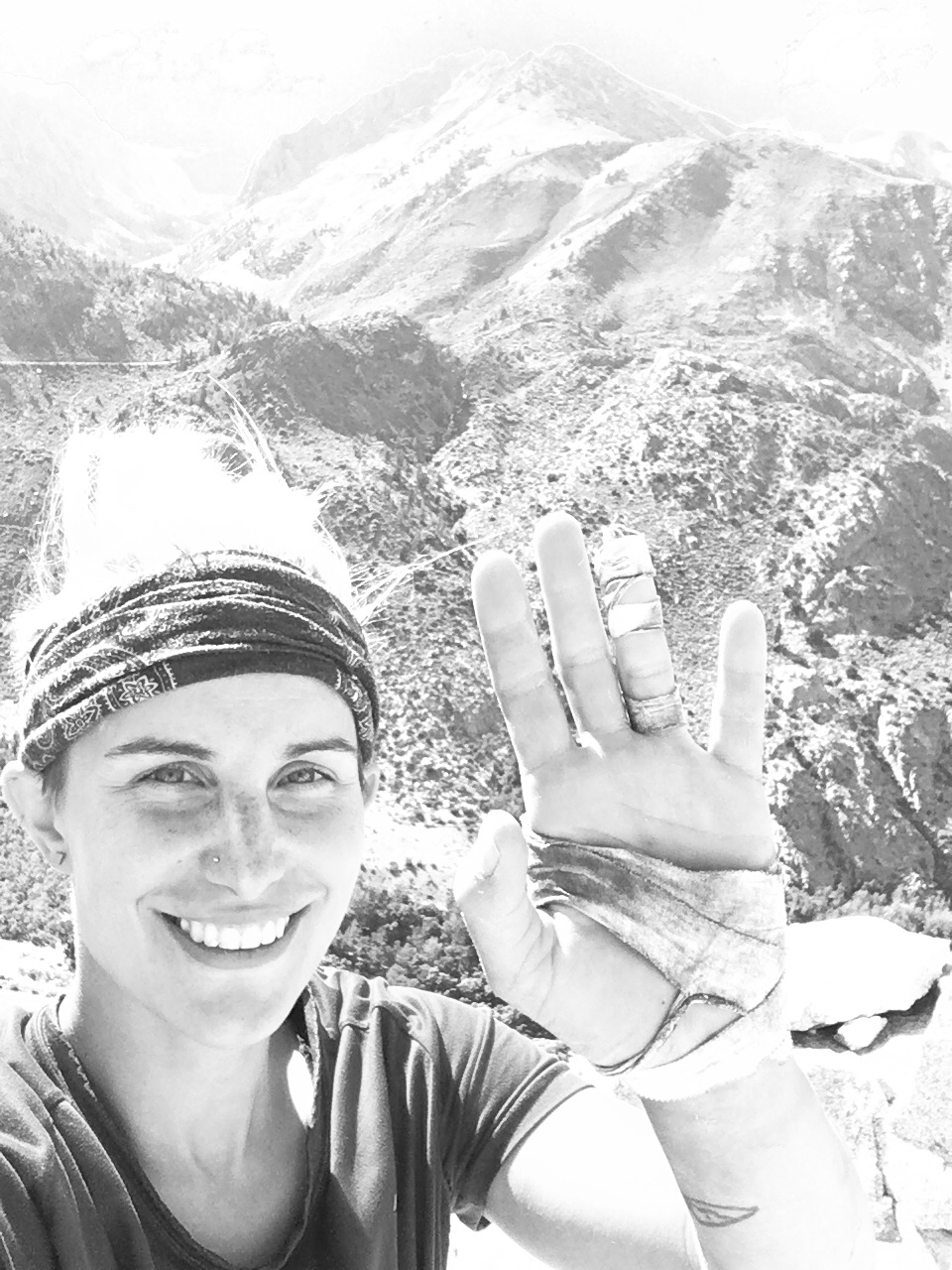 He seemed amazed at my skill to climb without 1) proper shoes – my big toe poked through my left shoe and the sharp tips were long gone 2) chalk on such a hot day on smooth granite – but that‘s what I‘m used to from climbing in Saxony – no chalk.