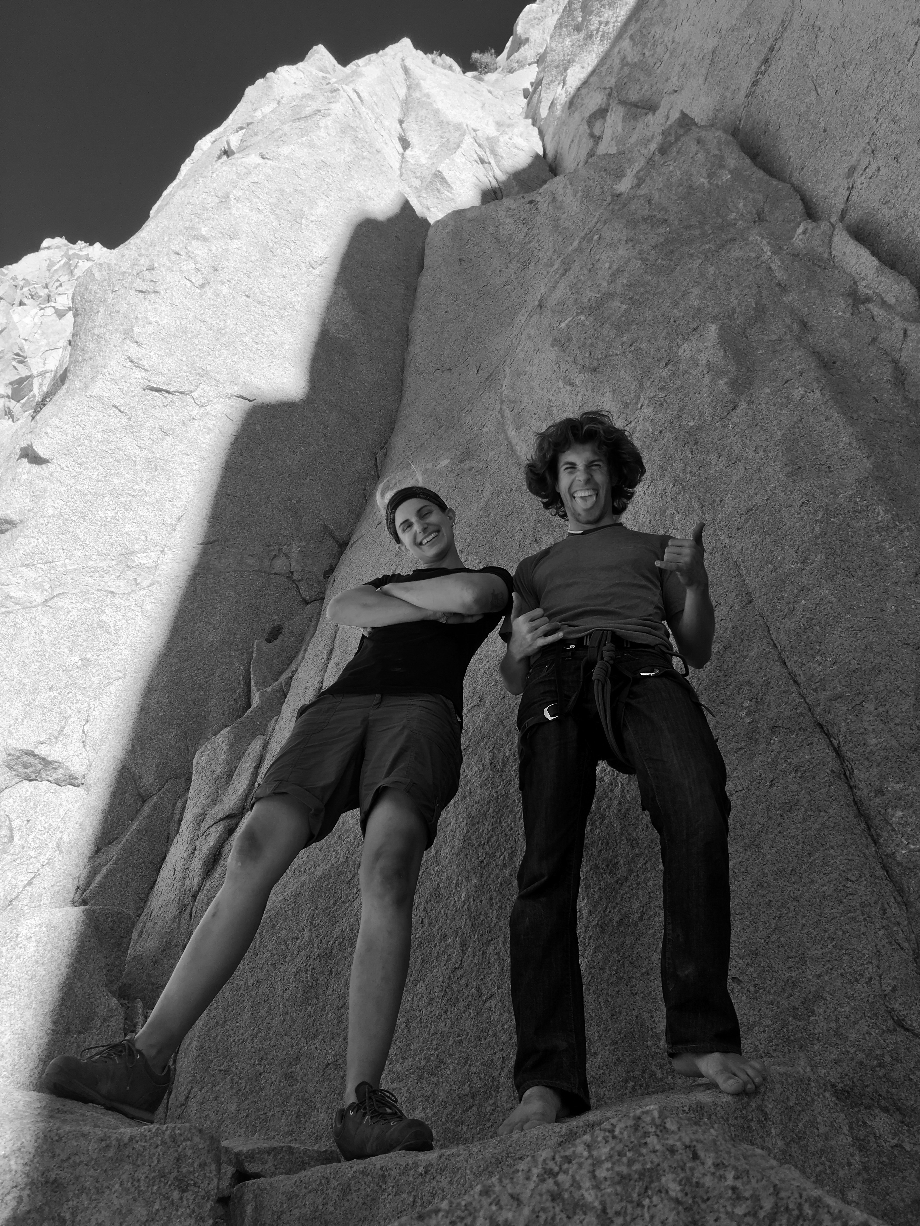 Starting the climb was really exciting, as I still felt yesterday‘s exhaustion in my arms and legs. I managed to calm myself and push on, laying protections into the cracks and slots, as I moved upwards on flakes and smooth walls. Nate lead the second pitch, as I was not determined enough to get past a difficult crack corner.